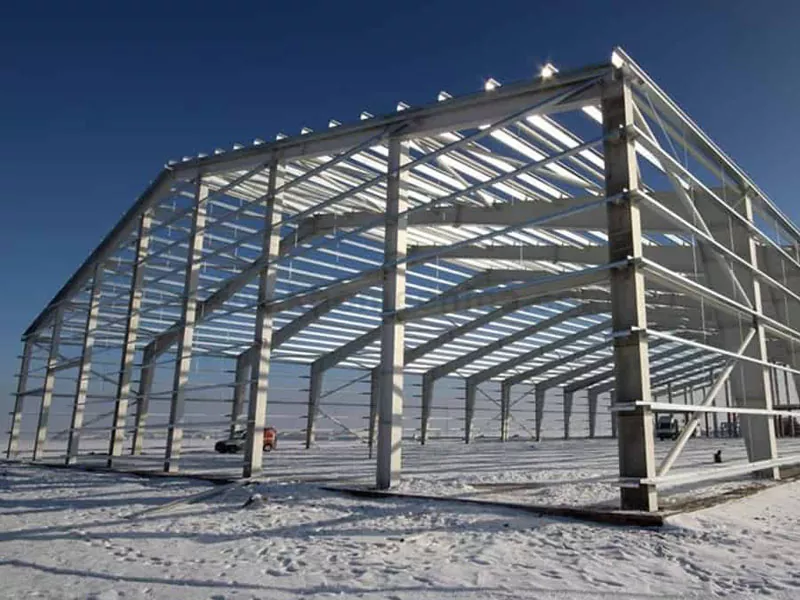 Sa higayon nga ang prefabricated nga mga sangkap sa asero gihatag sa lugar sa pagtukod, nagsugod ang proseso sa pag-install. Gamit ang mga cranes ug uban pang mga bug-at nga kagamitan, ang mga sangkap gipundok nga nagsugod sa mga haligi, nga gitukod ug gisaligan sa pundasyon. Ang mga sagbayan dayon gi-install aron makonektar ang mga haligi, nga nagporma sa bayanan sa bodega. Ang mga trusses sa atop gitukod ug gisiguro sa bayanan, nga naghatag suporta alang sa sistema sa atop. Kini nga sistematiko nga pamaagi nagsiguro sa usa ka hapsay ug episyente nga proseso sa pag-install.